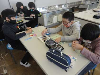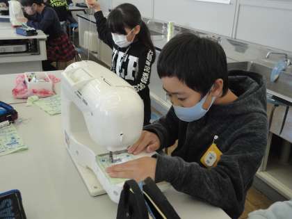 手縫いやミシン縫いでコースターを作りました。安全に縫い針やミシンを使いながら、線に沿って丁寧に縫うことができるようにがんばりました。