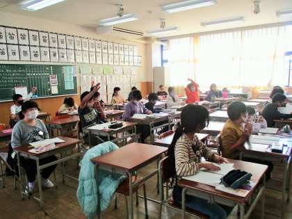 整数×整数の2ケタのひっ算のやり方の復習をした後、整数×小数のひっ算の練習をしました。