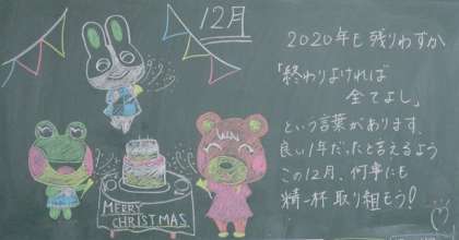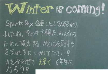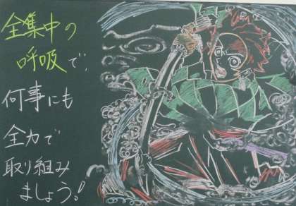 6年生の教室の黒板に担任のメッセージが書かれていました。