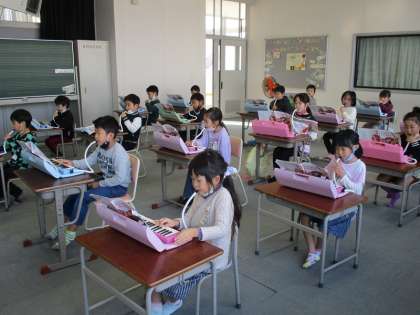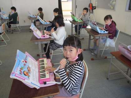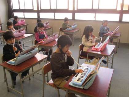 教科書にある「ひのまる」の曲を鍵盤ハーモニカで演奏しました。
