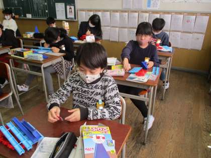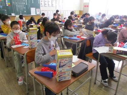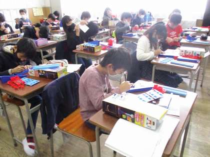 理科のふりこの実験に備えて、部品を切り取ってふりこを組み立て始めました。