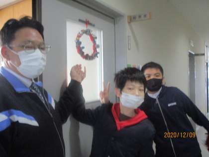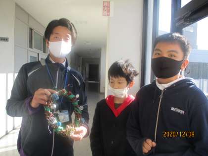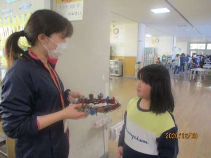 感謝の気持ちを込めて作ったリースを日頃お世話になっている校長先生や交流クラスの先生に贈りました。すぐに入り口の扉や教室に飾ってもらいました。