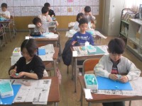 朝の会の時間に、教育実習生から、熱中症にならないためにどんなことに気を付けるかについて話を聞きました。しっかりお話を聞いていました。