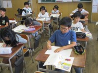 絵の具を混ぜて、いろいろな色を作り出します。今日は、何色と何色を混ぜるとどんな色になるかをみんなで考えました。
