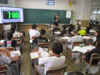 絵の具を使って色を塗っています。絵の具の濃さや筆の使い方に気をつけて、高学年らしい絵ができあがってきました。