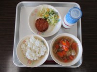 ☆今日の献立☆ポテトコロッケ キャベツとウィンナーのソテー トマトと卵のコンソメスープ