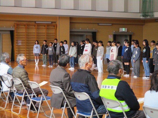 今日は中学生のおにいさんおねえさんが大和西小学校に来てくれて、あいさつ運動を行いました。