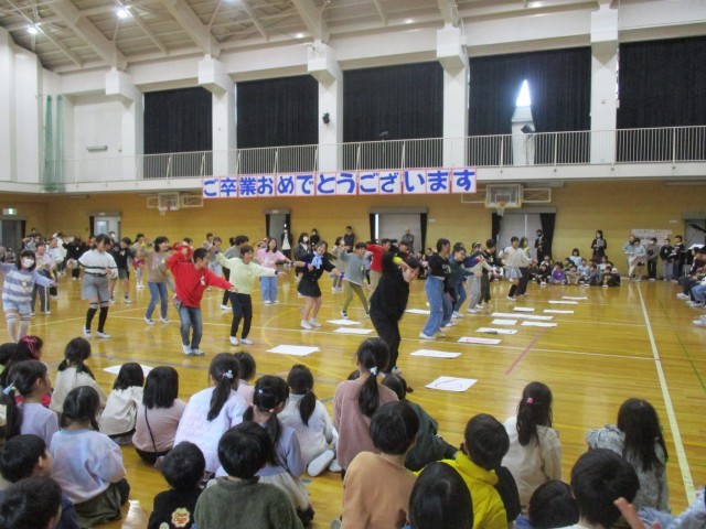 6年生を送る会では、各学年から心のこもった出し物の贈り物をしました。