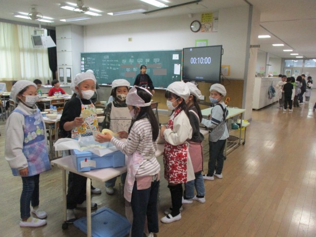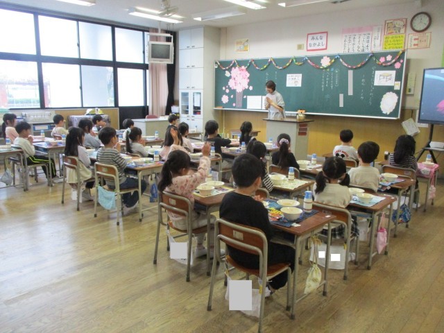 1年生さんも給食当番をして、時間内に食べ、片づけることができました。
