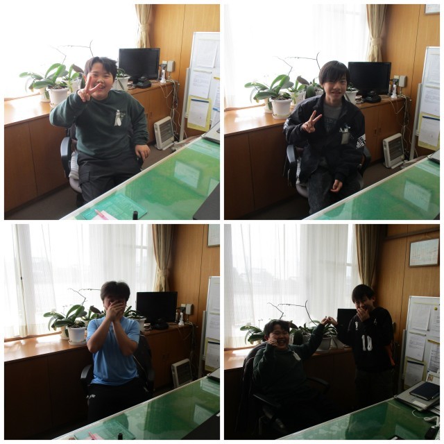 校長室の椅子に座って、記念撮影です。