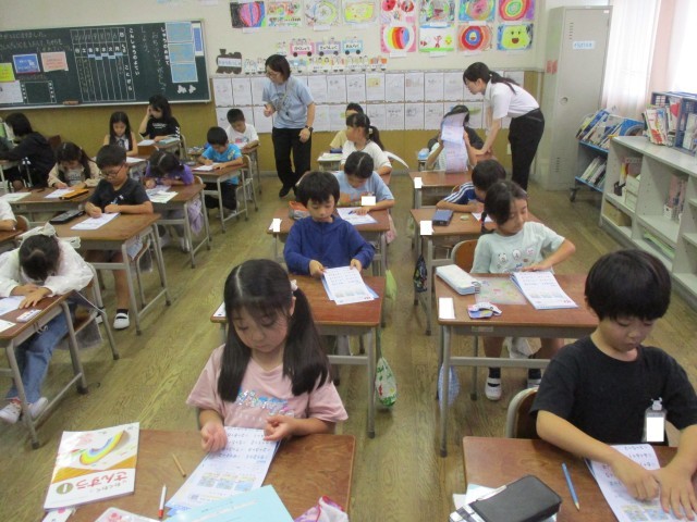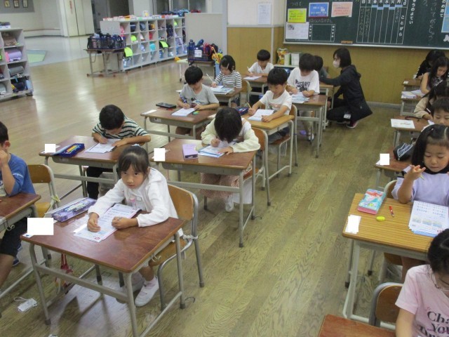 教室では、夏休みの日誌の答え合わせをしたり、提出物を先生に出したりしていました。