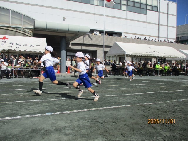 10月から練習を始めた「あいうえおんがく」は、元気いっぱい踊ることができました。短距離走もゴールを目指して、最後まで力いっぱい走りきることができました。みんなが一生懸命に頑張りました。