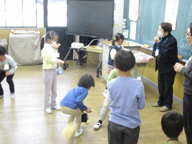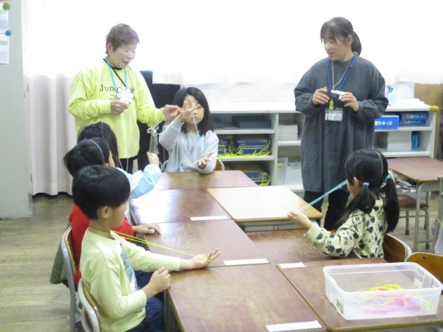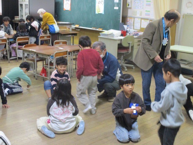 老連会の方に来ていただき、けん玉やお手玉など昔から伝わる遊びについて教えていただきました。子どjもたちは目を輝かせて活動していました。
