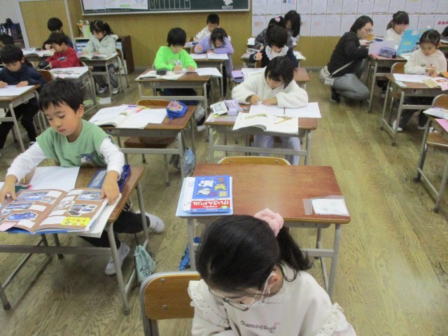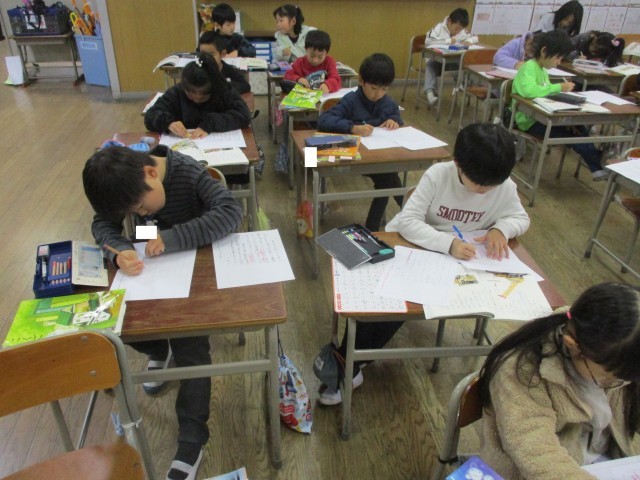 新出漢字の勉強をしました。筆順や文字のかたちに気を付けながら取り組みました。