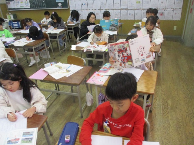 教科書をよく読んで、「もくずしょい」の隠れ方をプリントにまとめていきました。