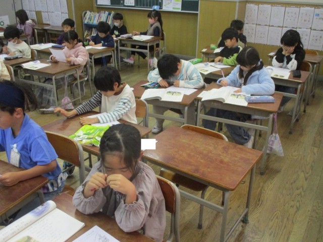 新出漢字の勉強をしました。筆順や文字のかたちに気を付けながら取り組みました。
