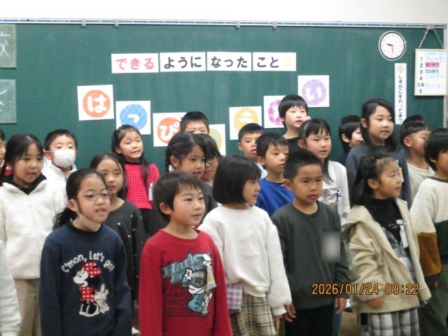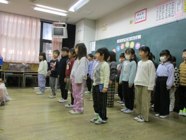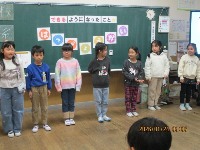 学習発表会の発表練習を通しで行いました。みんなの前での発表を頑張ったり、友達の発表をしっかり聞いたりすることができました。