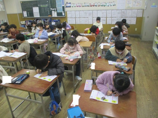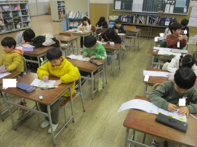 新出漢字の練習をしました。書き順や止め、はね、はらいなどに気を付けながら漢字ドリルに練習しました。