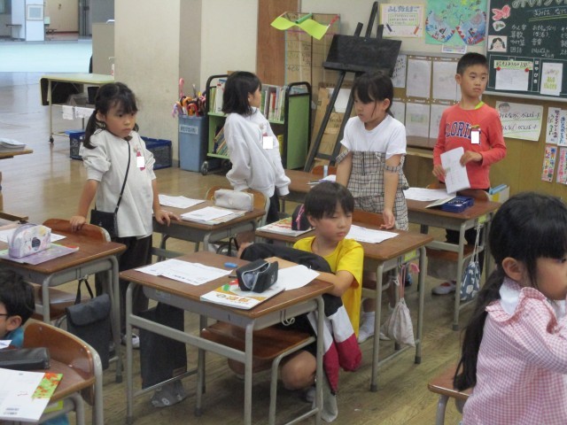 教科書を読んで、登場人物の様子やお手紙の内容などをプリントに書き出していきました。