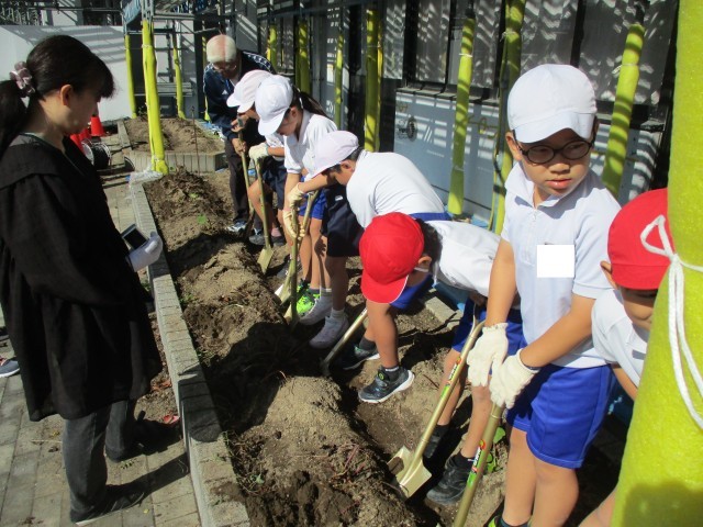 花壇に飢えていたサツマイモの収穫を行いました。みんなで交代しながら少しずつ収穫しました。