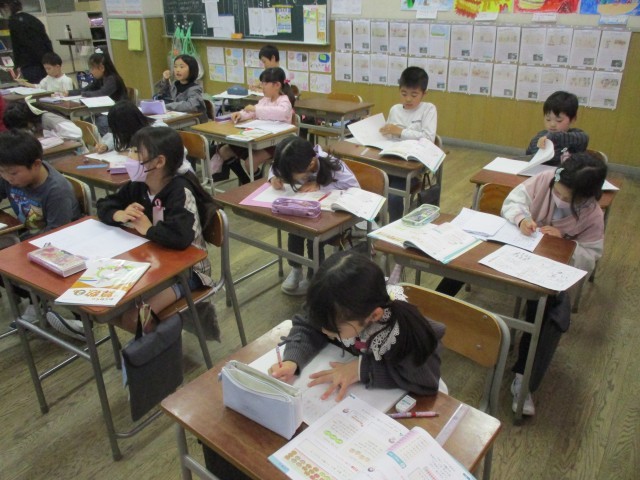 4月から今までに学習してきたことをいかして、ノートの巻末の練習をしました。できた子は先生に見せて丸をもらいました。