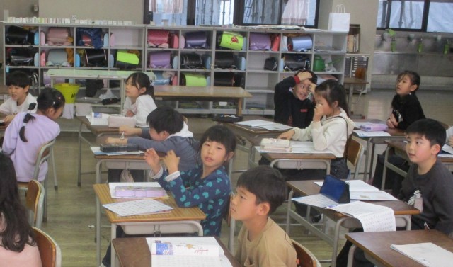 プリントを使って漢字の練習をしました。この後は漢字テストです。どれくらい覚えることができたでしょうか。