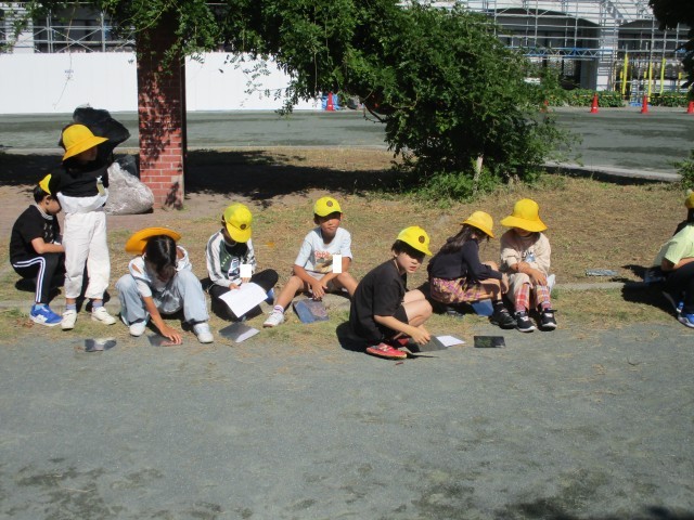 鏡ではね返した光はどのような進み方をするのか、実験で確かめました。みんな興味深そうに見ていました。