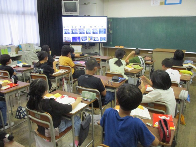 電子黒板に写し出されたたいろいろな絵画を見ながら、秋の夕の情景について考えていきました。