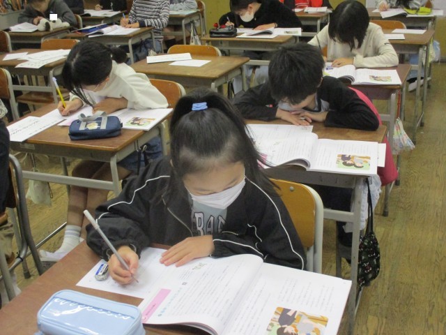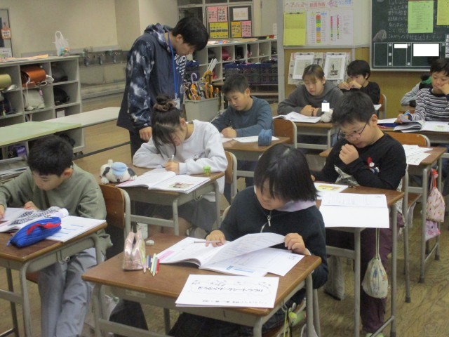 1~4年生は校外学習ですが、5・6年生は学校で普段通り授業に臨んでいます。少し寂しそうですが、普段通り学習を頑張っていました。