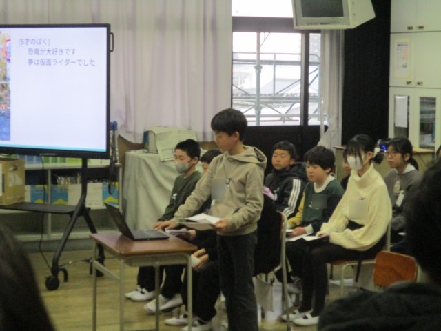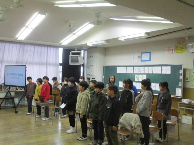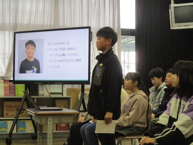 福祉の学習を通して、「ふだんの くらしの しあわせ」について考えてきました。今日は、小さい頃と今の自分の姿と、家族への感謝の気持ちを伝えることができました。気恥ずかしさや緊張がある中でしたが、しっかり気持ちを込めて発表することができました。