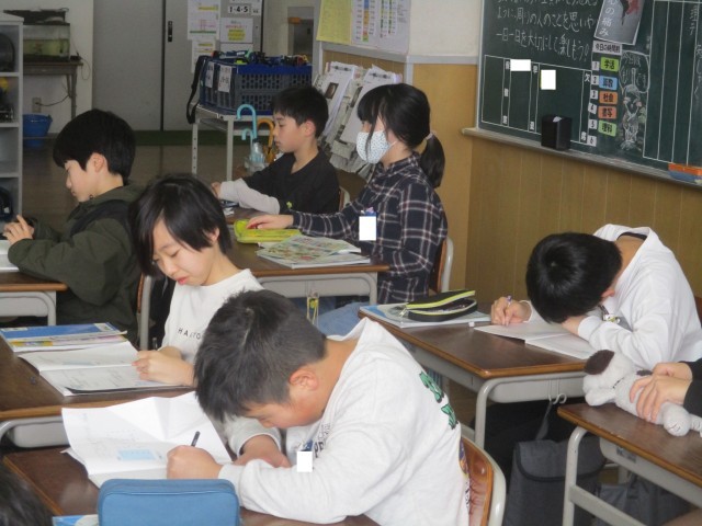 福祉の学習を通して、「ふだんの くらしの しあわせ」について考えてきました。今日は、小さい頃と今の自分の姿と、家族への感謝の気持ちを伝えることができました。気恥ずかしさや緊張がある中でしたが、しっかり気持ちを込めて発表することができました。