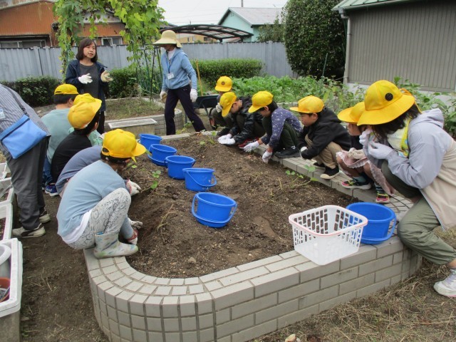 玉ねぎの収穫をしました。たくさん収穫ができ大喜びでした。どの子も進んで葉を切ったり、運んだり、切った葉を集めたり、作業をしていました。