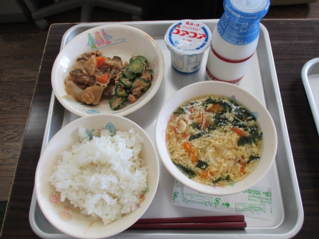 ☆今日の献立☆梅味ぶたこまだいこん きゅうりのツナ和え かきたま汁 ヨーグルト
