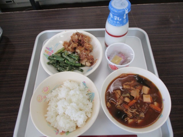 ☆今日の献立☆あじフライ はくさいのこんぶ和え ちゃんこ汁 味付けのり
