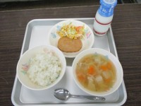 ☆今日の献立☆ボロニアステーキ 春キャベツのサラダ かぶのコンソメスープ☆「学校...