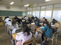 12日(金)と15日(月)に学力テストが行われます。いつもは問題用紙にそのまま書き込むテストですが、今回は問題用紙と解答用紙が別なので、答え間違いのないように練習問題に取り組みました。