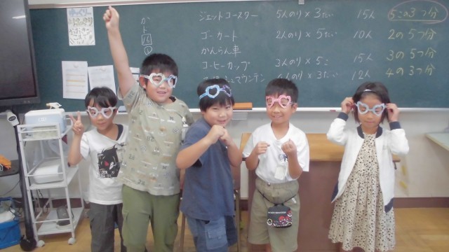 図工の学習で、カッターの練習をしています。今日はめがねを作りました。素敵でしょ。