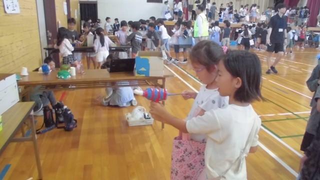 先週のおもちゃフェスティバルの様子です。2年生の子どもたちは、すごくがんばりました。一生懸命お店の用意をしたり、1年生に遊び方を説明したりしている様子を見たら、成長したなと感動しました。