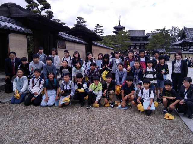 交通渋滞に巻き込まれて、予定より約20分ほど遅れていますが、さきほど法隆寺の見学を済ませました。とても高い五重塔にびっくりでした。