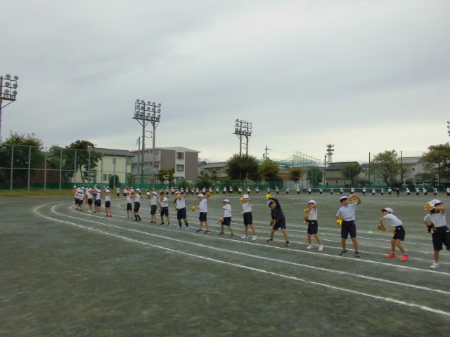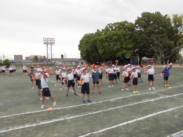 運動会の練習もいよいよ終わりが見えてきました。今日は手具を使ってダンスをしました。肌寒い中でしたが、みんな頑張りました。