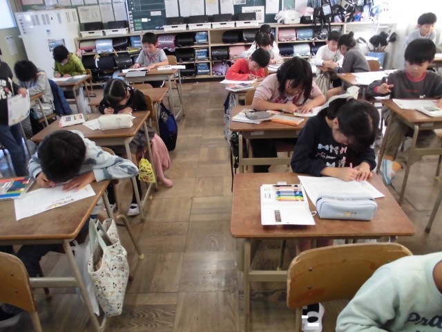 昨日行った町たんけんの施設の方にお礼のお手紙を書きました。子どもたちは、感謝の気持ちを伝えようと一生懸命取り組んでいました。