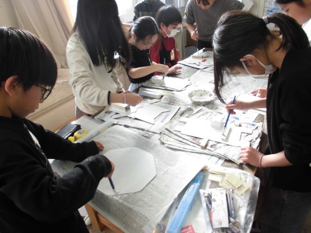 初めてあつかう塗料に少し苦戦しながらも、水彩絵の具との違いを感じながら色塗りを楽しんでいました。