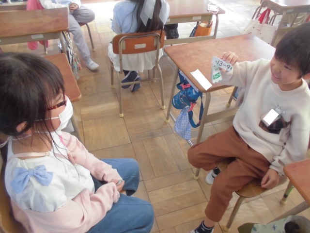 ひきざんカードを使って、計算の練習をしました。ペアで問題を出し合いながら練習したり、ゲームを通して練習したり、楽しんで学習をしています。