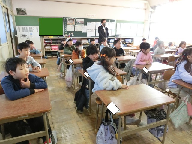 個人情報や著作権に関することを1年生でもわかるように教えていただき、子どもたちもしっかり話を聞いていました。