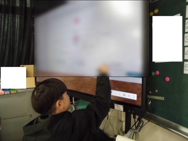 算数では、「ものと ひとの かず」という単元を学習しています。考え方を図に書いたり、電子黒板で答えを確認したりして、学びを深めました。