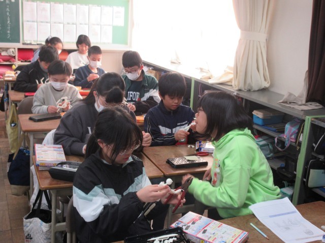 作品展に向けて、図工の授業で作品づくりに取りかかり始めました。未来の自分の姿を想像して、粘土を使って動きのある作品にしようと頑張っています。