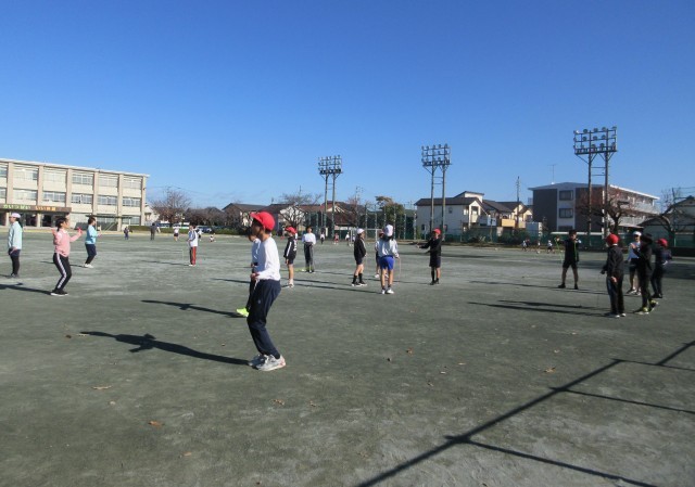 体育の授業では、リズムなわとびを行っています。友達と教えあったり、競ったりしてリズムなわとびに取り組んでいました。