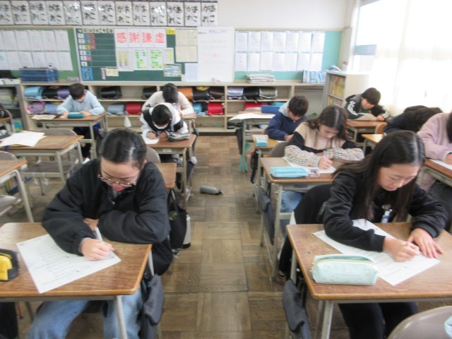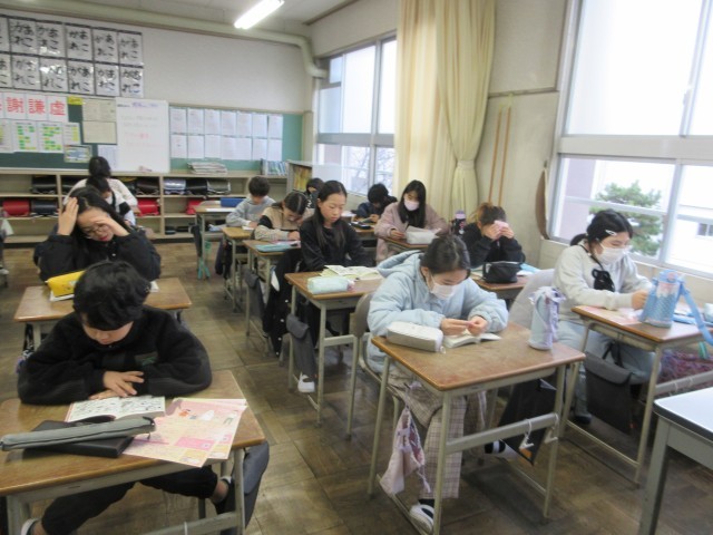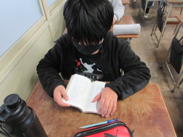 終業式前の朝の時間に読書をしています。落ち着いた雰囲気で過ごせています。