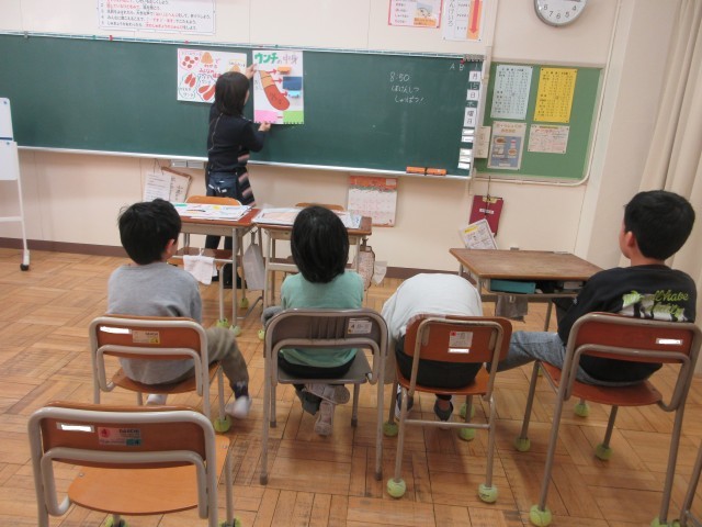 今日は身体測定を行った後、保健の先生に保健指導(うんちの話)をしていただきました。紙芝居でトイレの歴史を知ったり、うんちの様子で健康チェックができることを教えていただいたりと、初めて知ることがたくさんで、興味深く話を聞くことができました。