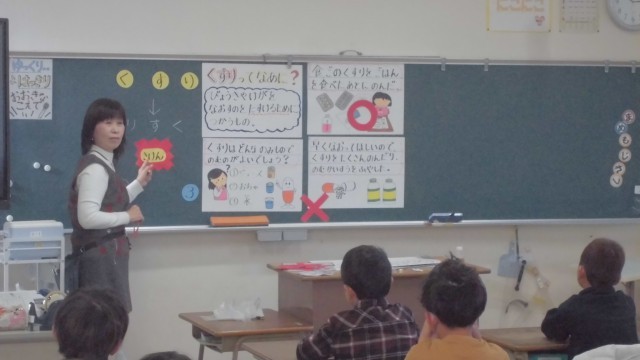 3学期の身体測定がありました。みんな背が伸びて、大きくなっていました。その後、教室で保健の先生から、薬のリスクについてクイズ形式で楽しく教えてもらいました。